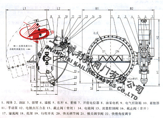 HD7S41X重錘式液控蝶閥是目前國內外較先進的管路控制設備,主要用于水電站、自來水給水泵房以及電力、石油、化工、冶金、礦山等其他各類泵站、安裝在水輪機進口或水泵出口管路、作截止、止回、調節之用。
