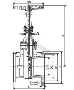 Z44H、Z64H水封閘閥適用于公稱壓力PN1.6~10.0Mpa,工作溫度0~425℃的火力電站回水冷凝系統(tǒng)及石油、化工要求與大氣隔離的管道上,切斷或接通介質(zhì),適用介質(zhì)為: 水、油品、蒸汽和非腐蝕氣體等。填料函設(shè)計(jì)成水密封結(jié)構(gòu),接入0.6~1.6Mpa的水填料,摩擦力小,密封好,能全系統(tǒng)與大氣 隔離,保證良好的氣密性。啟閉件采用雙閘板向彈性密封,啟閉可靠,性能良好。閥桿徑調(diào)質(zhì)和表面氮化處理,有良好的搞腐蝕性和抗擦傷性。 結(jié)構(gòu)簡單,緊湊合理,檢修方便